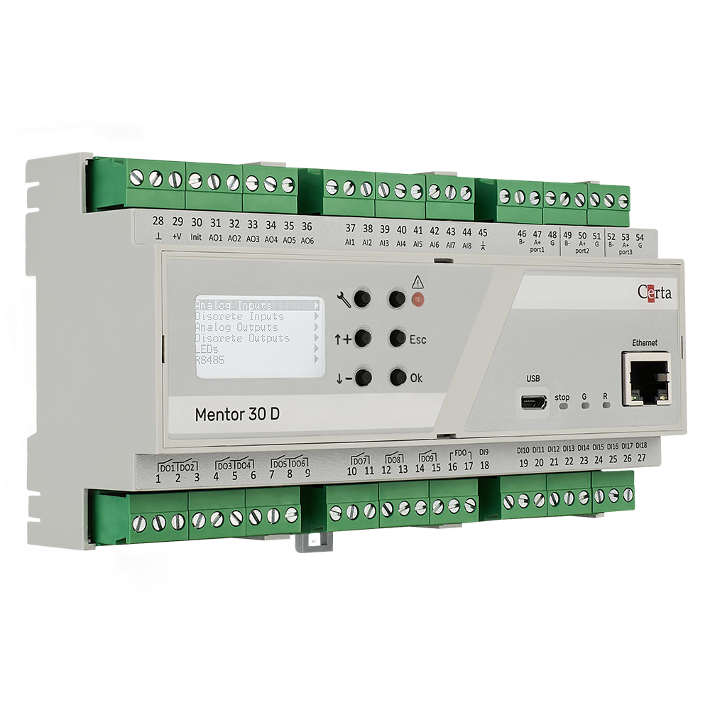 Універсальний програмований контролер з дисплеєм, який може вирішувати широкий спектр задач з автоматизації. Контролер програмується за допомогою діаграм функціональних блоків (FBD) в середовищі розробки ViCS.